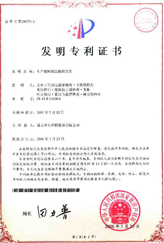 • Представляя Правительству РФ Инновационно-технологический проект «Глубокая переработка тяжелых нефтяных остатков», Компания получила положительное заключение Государственной экспертизы – Республиканского исследовательского научно-консультационного центра экспертизы от 01.07.2002г. № 246.